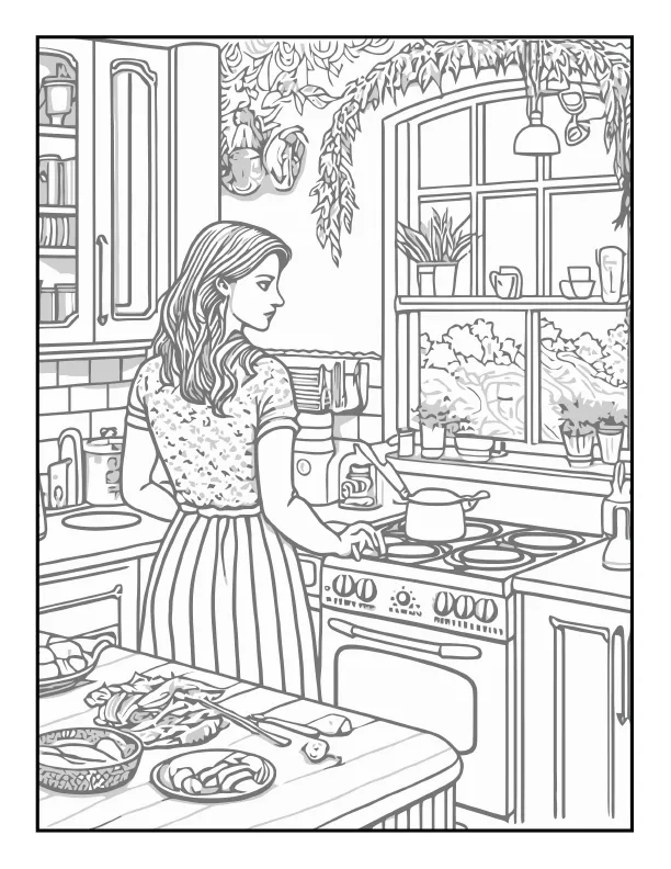 Cozy coloring pages focus on comfort, warmth, and peaceful everyday life. These pages often show: